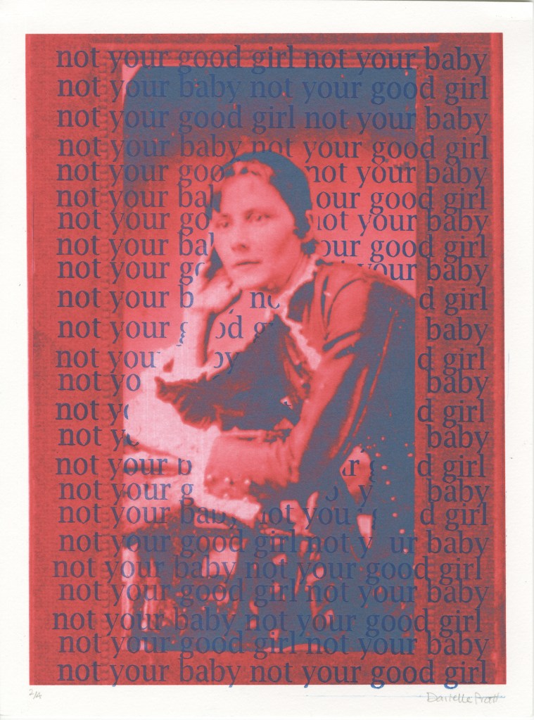 These prints are derived from my grandmother’s photographs, which were digitally altered. Text was added via letter press over the digital print.  Spring 2016.